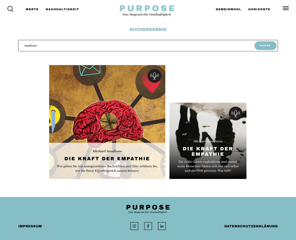 Journal International – The Home of Content engagierte mich als strategischer Berater und Botschafter für die neue, edlere Print-Ausgabe PURPOSE, dem Magazin für Sinnhaftigkeit.